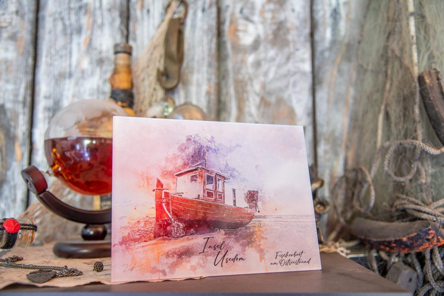 2. Maritimes Aquarellmotiv Fischerboot – Insel Usedom